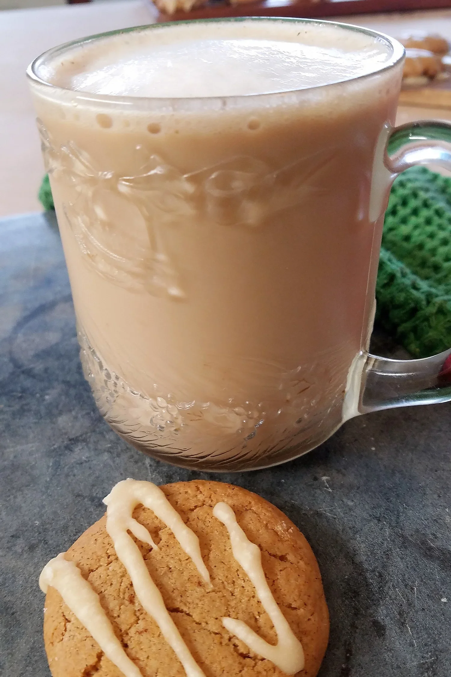 Heat milk to just under boiling. Put warm milk in a leak-proof container and shake for 30 seconds until frothy, or use a foaming wand.
